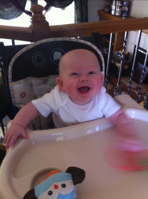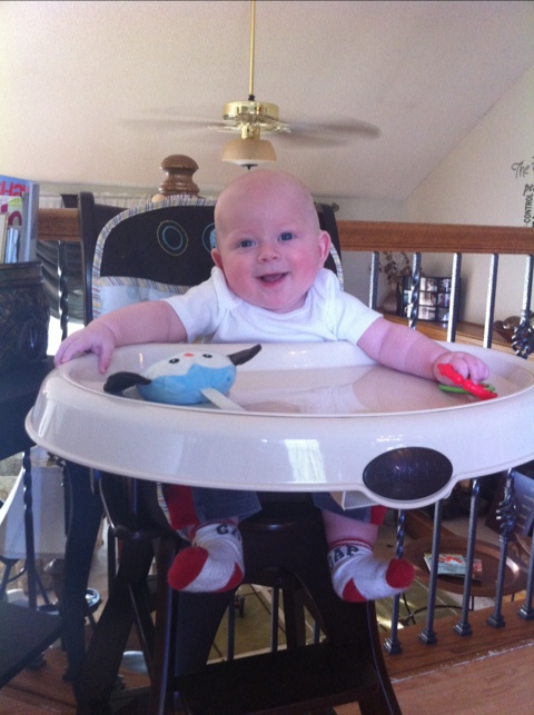 Here are some pics of mr showing my bigness as I sit in my high chair while dad and mon eat breakfast.