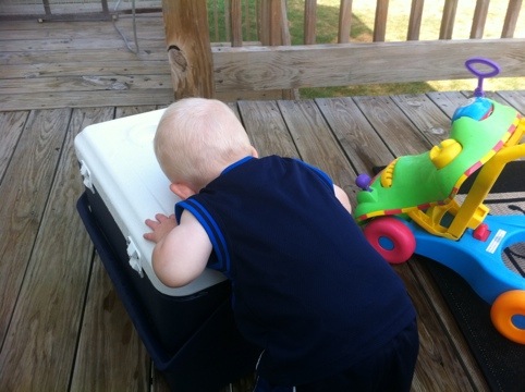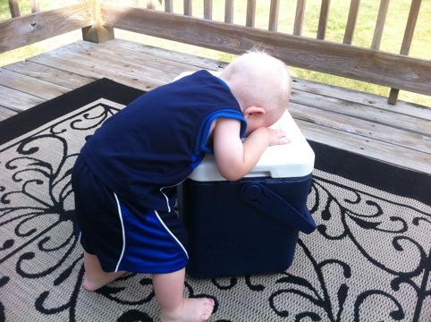 Dad caught me drinking the water the rain left in the cooler cup holders.